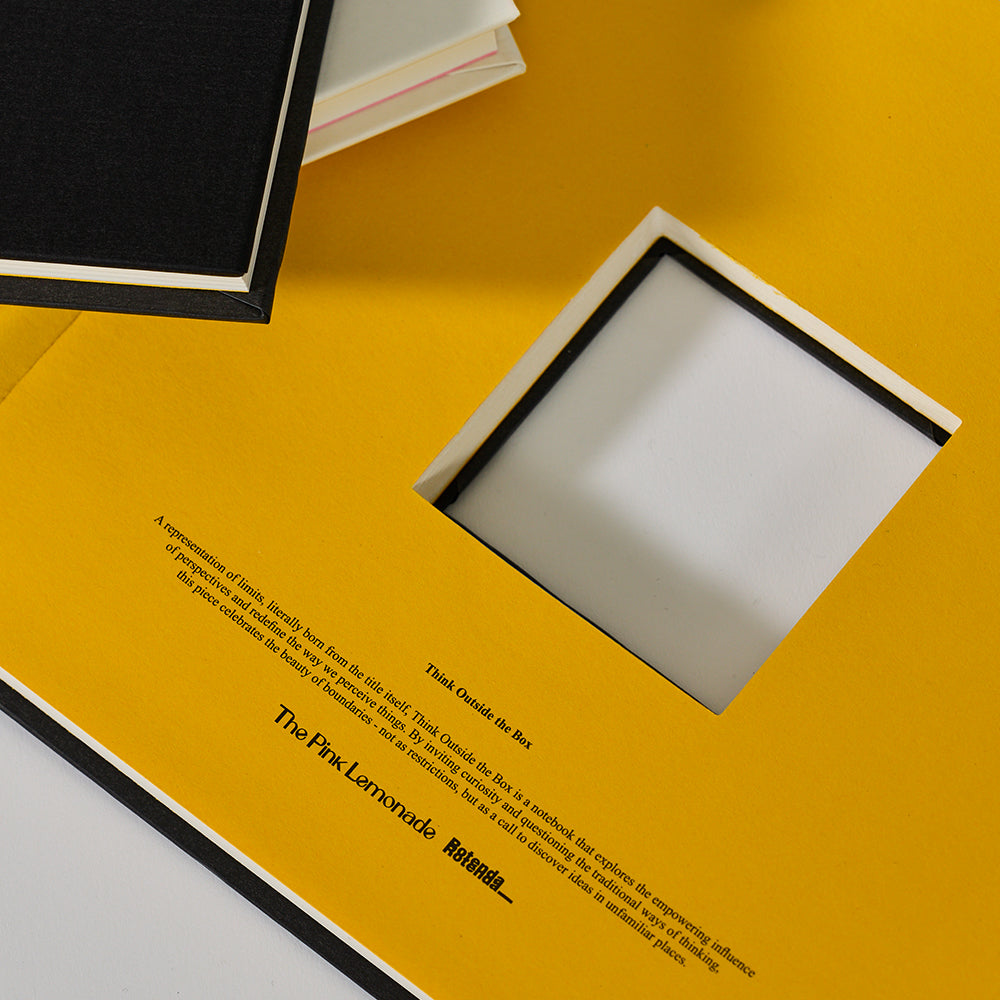 Designed by South African born, Munich based designer Rotenda, Think Outside the Box is a notebook created to challenge perception. Created in collaboration with The PinkLemonade, this notebook transforms a simple object into a philosophical prompt, a reminder that boundaries are not barriers, but invitations